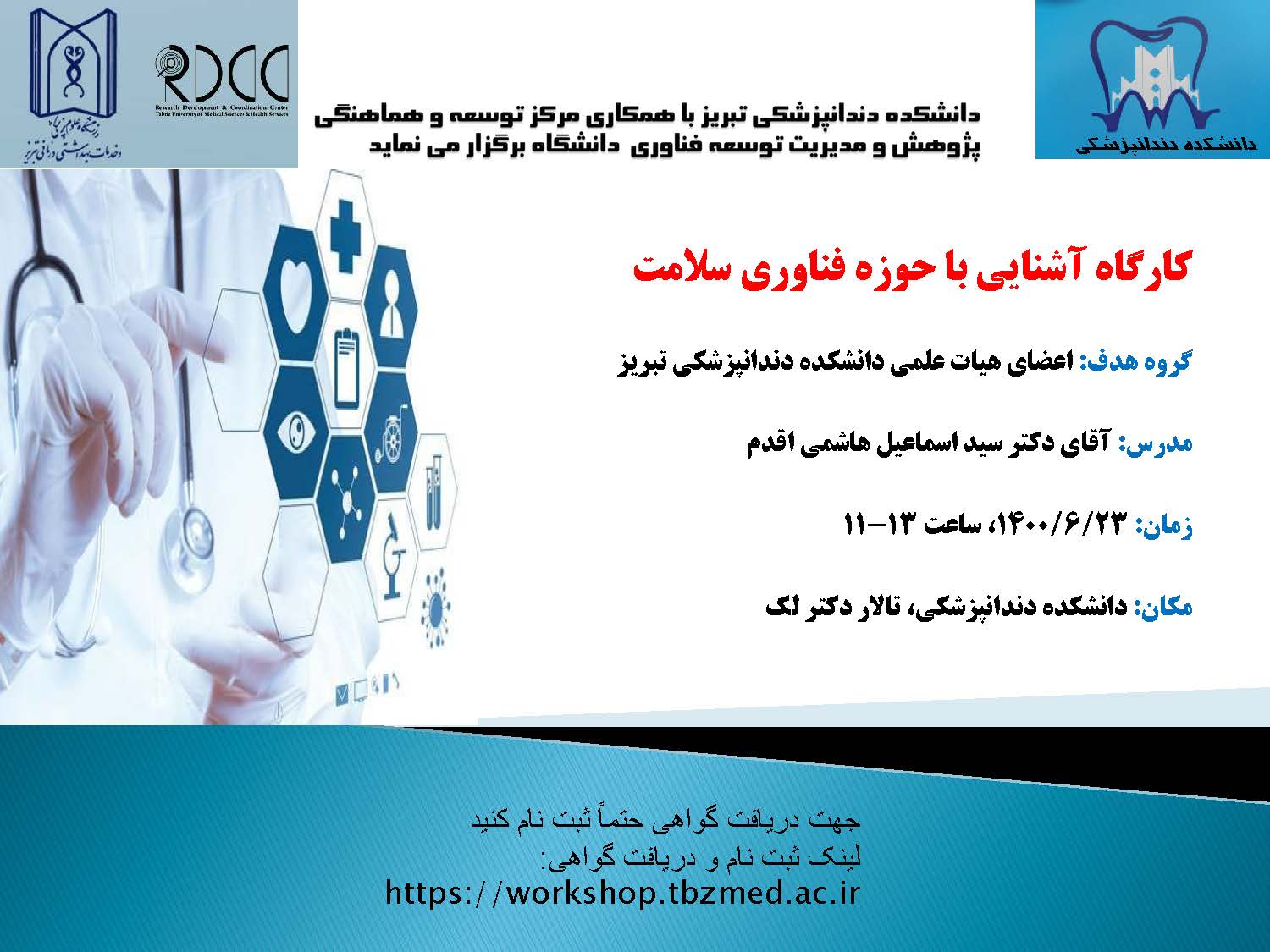 دانشکده دندانپزشکی تبریز با همکاری مرکز توسعه و هماهنگی پژوهش و مدیریت توسعه فناوری دانشگاه برگزار می کند.
