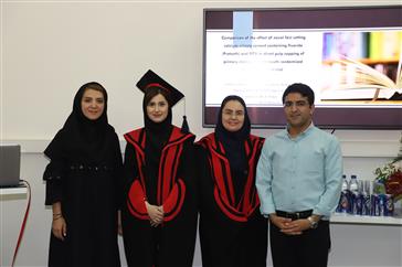 روز سه شنبه مورخ 98/4/4 جلسه دفاع از پایاننامه خانم دکتر نیلوفر عظیما دستیار تخصصی گروه دندانپزشکی کودکان با عنوان " مقایسه اثر سمان کلسیم سیلیکات فلورایددار سریع ست شونده (Protooth)و MTA در درمان پوشش مستقیم پالپ دندان های مولر شیری. یک مطالعه ی کارآزمایی بالینی تصادفی متقاطع شاهددار " تشکیل شد.( استاد راهنما : سرکار خانم دکتر لیلا عرفان پرست – استاد مشاور : جناب آقای دکتر علی وفایی و خانم دکتر سیده آرزو قریشی زاده )